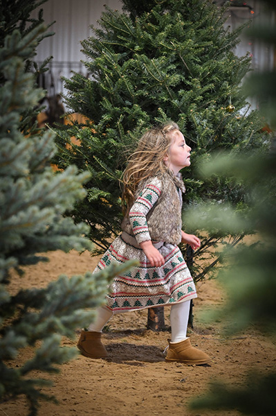 Sleigh Bell Farm promises a magical winter experience for you and your family. Follow the sycamore-lined drive to an indoor arena filled with the scent of pine and adorned with twinkling lights. Attendants in cozy sweaters will help you select the perfect Christmas tree for your home.